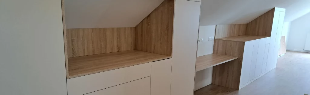 Nous sélectionnons chez nos partenaires et fournisseurs les meilleurs matériaux et fabriquons vos meubles (bibliothèque, dressing, meuble tv, bureau, buanderie, placard, sous pente, sous escalier…) avec une précision rigoureuse.